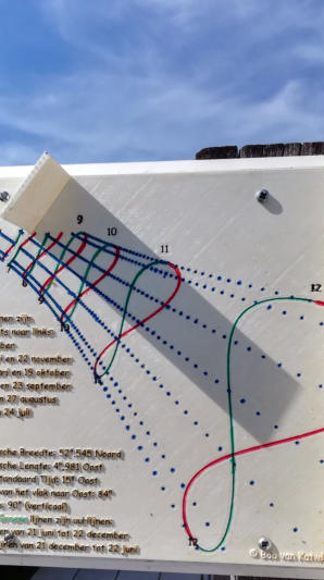 zonnewijzer trok mijn aandacht vanwege de bijzonderheid van de schaduw-(uur-)lijnen om de 15 graden. Op internet kon